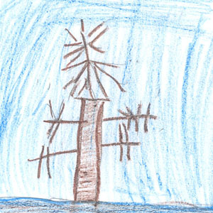 ![]() It has no leaves. It has a bump in it. Snow is all around it. By Nicole |